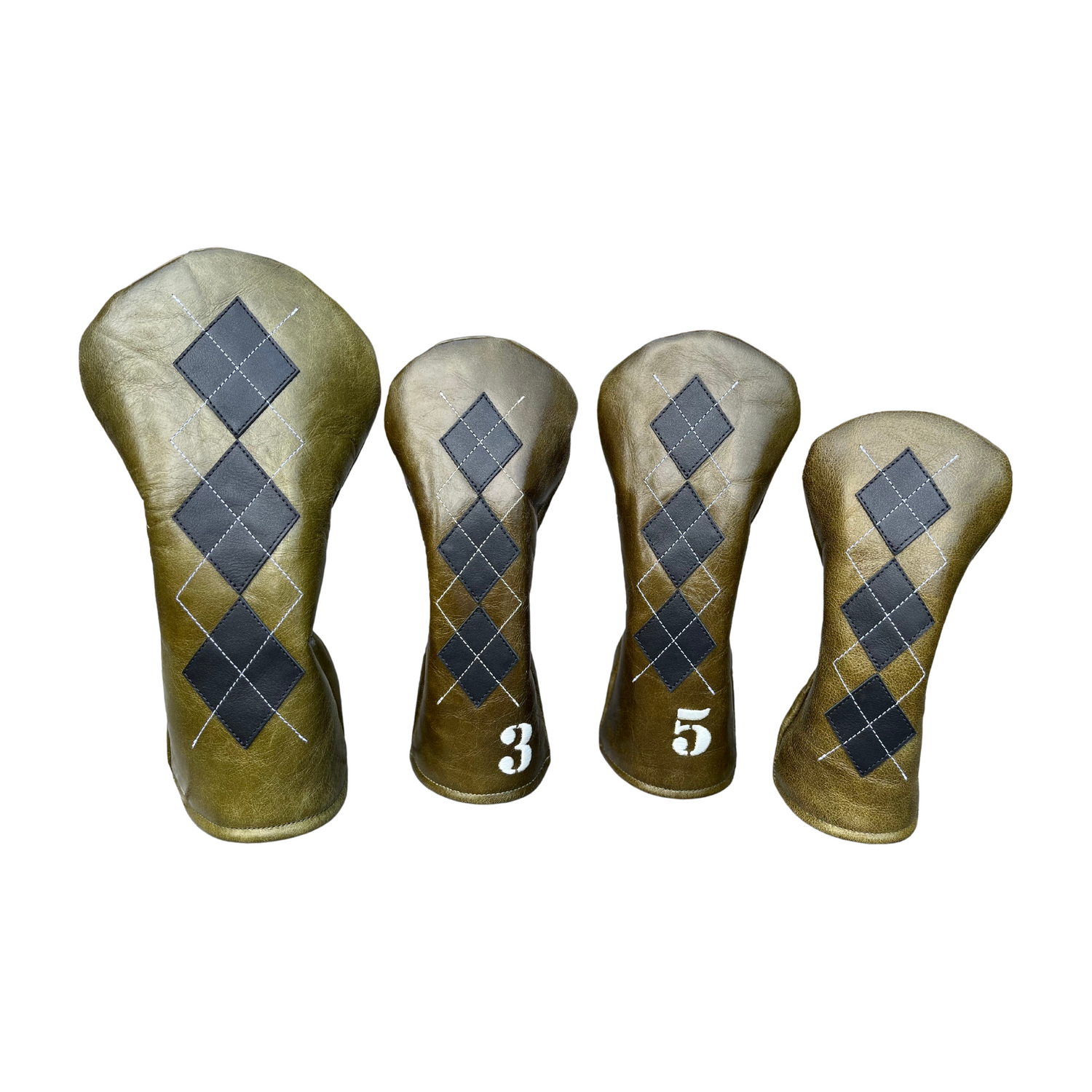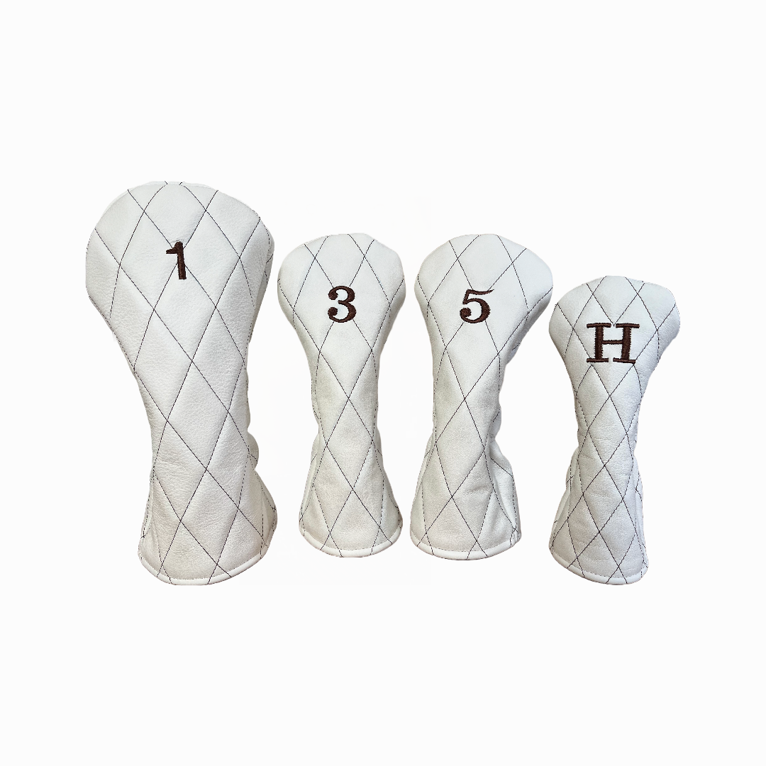 Luxurious quilted head covers featuring plush padding, embroidered numbering and hand-sewn diamond patterns. A new take on a retro style.